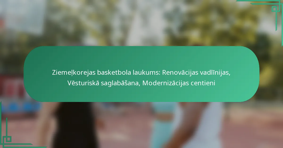 Modernizācijas centieni Ziemeļkorejas basketbola laukumos koncentrējas uz modernu tehnoloģiju un ilgtspējīgu praksi integrēšanu, vienlaikus saglabājot vēsturiskos elementus. Šīs iniciatīvas mērķis ir uzlabot laukumu funkcionalitāti un veicināt kopienas iesaisti caur sportu.