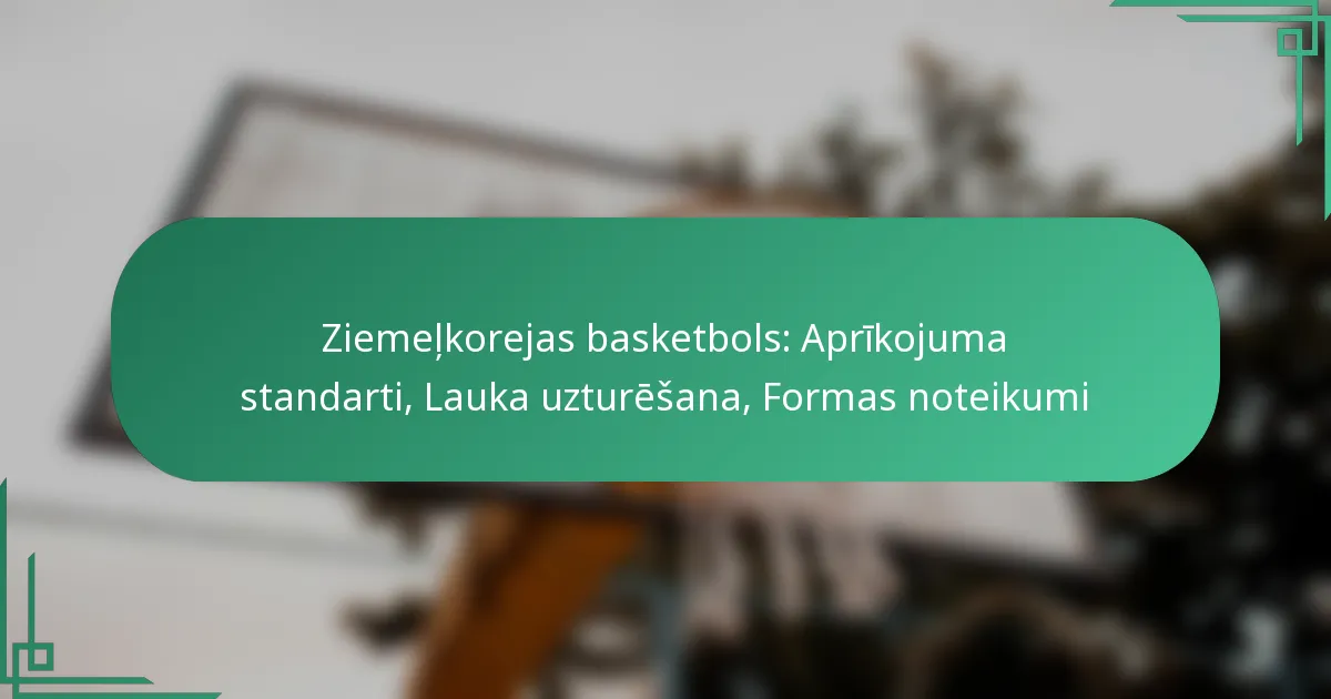 Ziemeļkorejiešu basketbolu regulē specifiski aprīkojuma standarti, kas atspoguļo valsts unikālo sporta kultūru, tostarp noteikumus par basketbola veidiem, grozu specifikācijām un atbalsta dēļu izmēriem. Lauku uzturēšanas prakse ir būtiska, lai nodrošinātu drošas un funkcionālas spēļu virsmas, neskatoties uz ekonomiskajām grūtībām, kamēr vienotu noteikumu uzsvars liek uz stingru krāsu, dizaina un logo izvietojuma ievērošanu, nostiprinot nacionālo identitāti un kultūras vērtības.